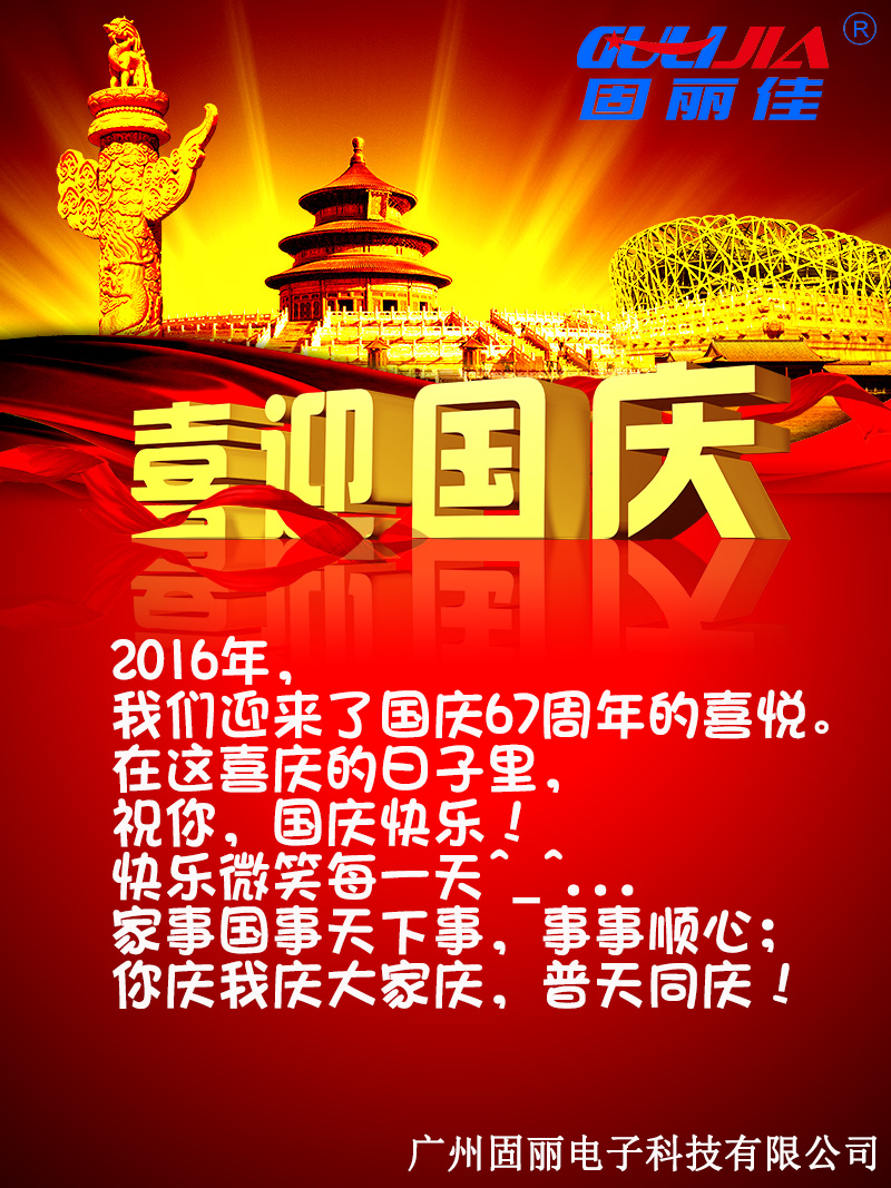 廣州固麗電子科技有限公司,祝大家國(guó)慶快樂(lè)。