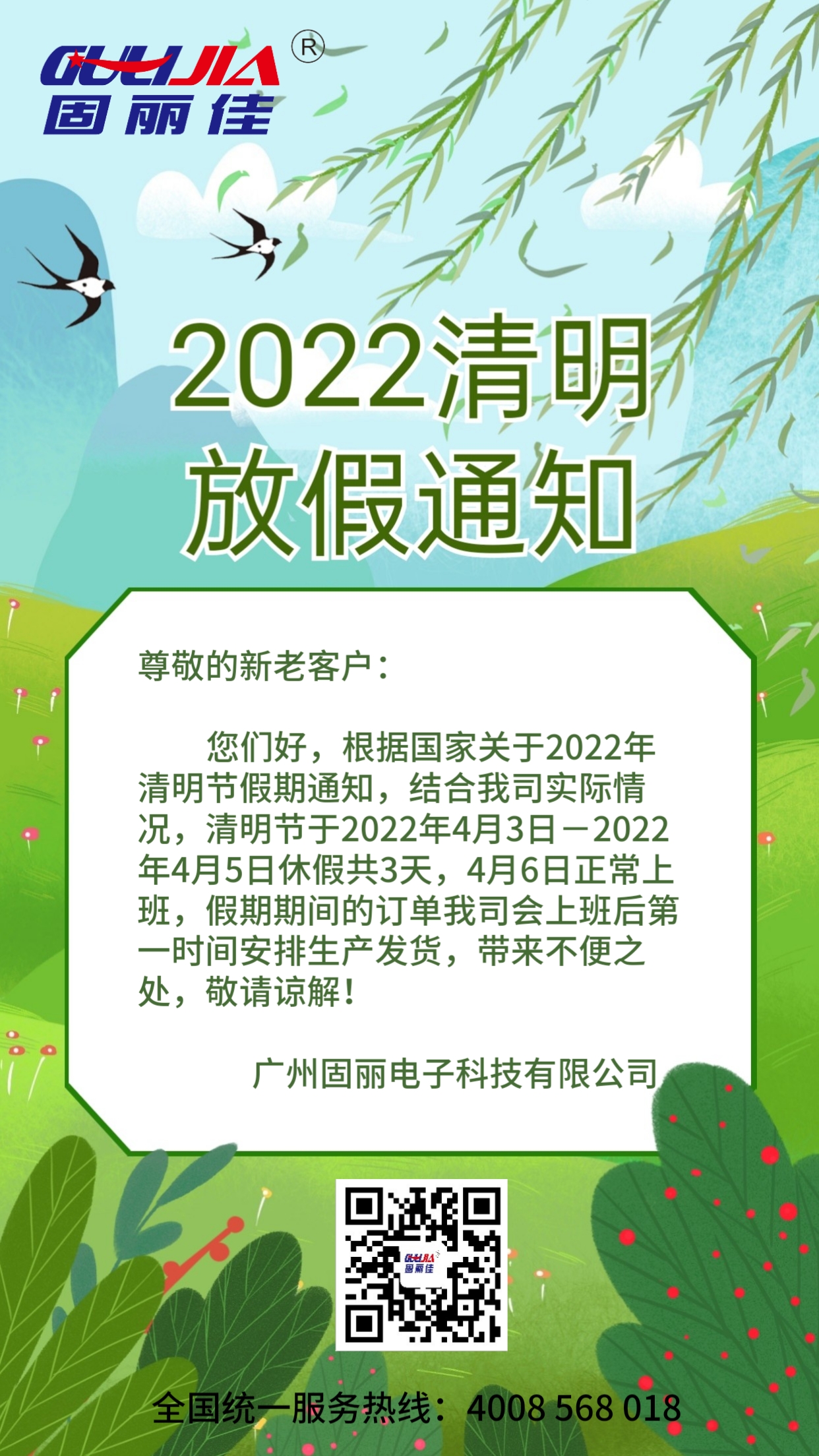 廣州固麗電子科技有限公司溫馨提示:假期注意安全、減少外出,出行佩戴口罩,做好防護,避免去人多的地方!