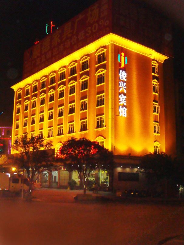 俊興賓館位于英德市中心,建筑面積3800多平方米,雄踞市東西南北交通總匯.車水馬龍,人流不息,商賈云集,百業(yè)昌興的黃金地段.賓館樓高七層既歐路豪情,又獨(dú)領(lǐng)南粵風(fēng)采,別具一格的豪華燈飾,火樹銀花,更顯金碧輝煌.英德俊興賓館中央式空調(diào),擁有固麗佳小度智能化設(shè)施、智能化管理和智慧化服務(wù)。俊興賓館是旅游,度假,商務(wù),會(huì)客的理想地方,東嘗長湖魚,西賞峰林石、南登寶晶宮、北游地下河,聲到車到,彈指一揮間而已。內(nèi)設(shè)豪華套房、豪華商務(wù)房、標(biāo)準(zhǔn)雙人房、普通雙人房、單人房128張,另設(shè)豪華桑拿套間、標(biāo)準(zhǔn)間、沐足間、按摩間、為您的休閑消遣提供方便。