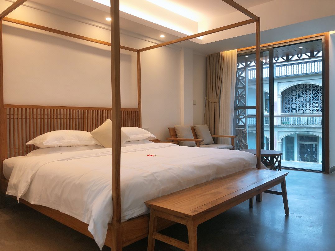 民宿的房間布置很精致雅觀,綠色窗臺(tái)顯得洋氣,桌、椅、床、凳充滿了復(fù)古的氣息。