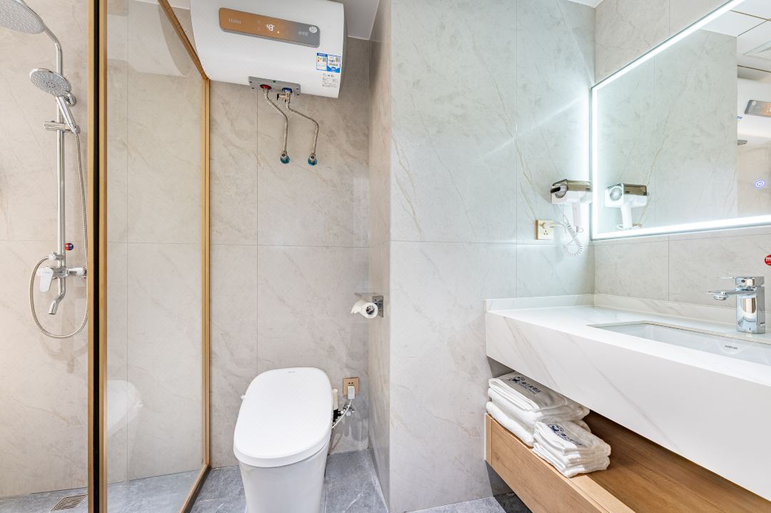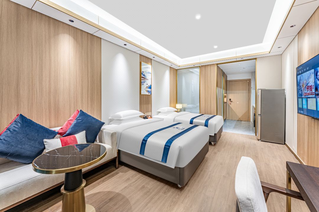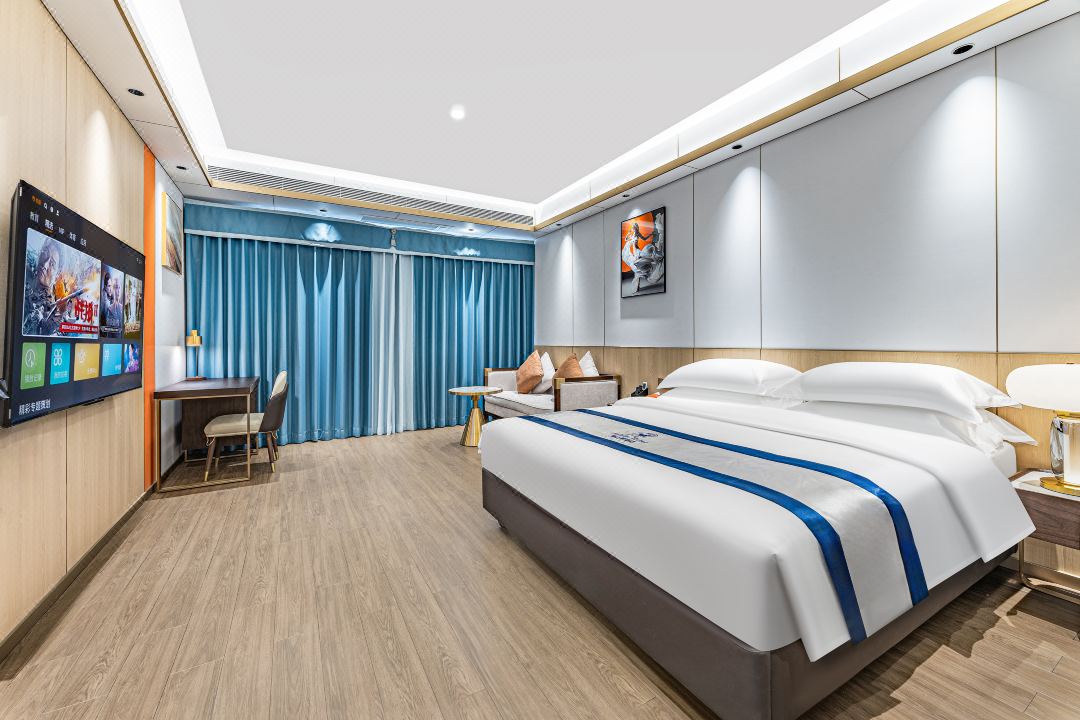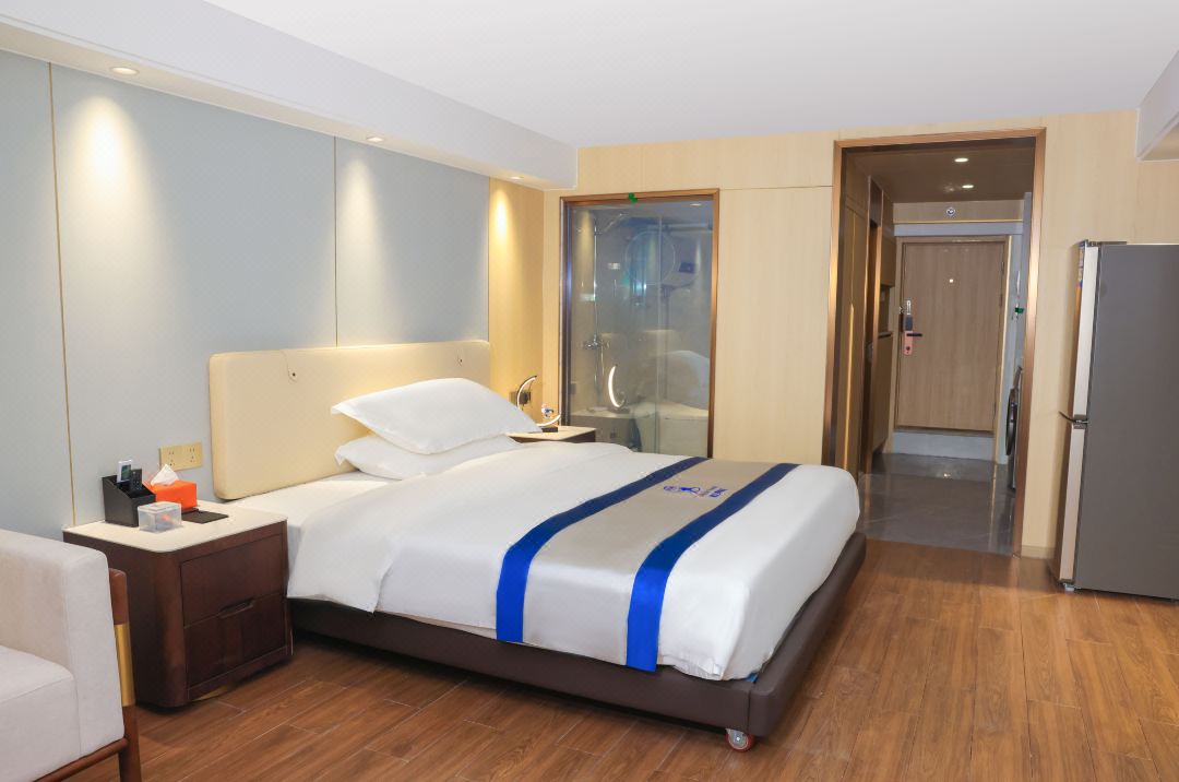 禧之萊酒店采用無甲醛高端材質(zhì)裝潢,標配全智能語音,極力打造體驗式的居住環(huán)境,酒店配有會議,豪華的餐飲包房及包間,房間內(nèi)設(shè)有洗衣機,冰箱生活配套設(shè)施,讓您新體驗品質(zhì)和服務于一體的高端感受。       禧之萊酒店注重客房的舒適度與功能性。每間客房都設(shè)計得既現(xiàn)代又溫馨,確保了空間的整潔與明亮。