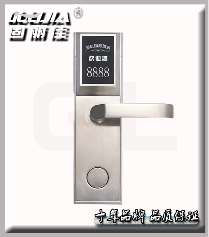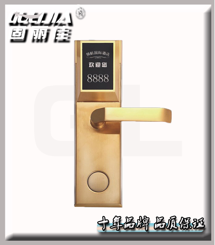 肇慶永和賓館從08年就開(kāi)始選擇我們固麗佳的插卡門(mén)鎖,此次重新裝修升級(jí),把原來(lái)老款的插卡門(mén)鎖換成新款的智能感應(yīng)門(mén)鎖,再次選擇了我們固麗佳!定制了商務(wù)型智能酒店門(mén)鎖GLJ-815此款門(mén)鎖可以定制專屬的酒店面板LOGO以及更換不銹鋼個(gè)性把手等!