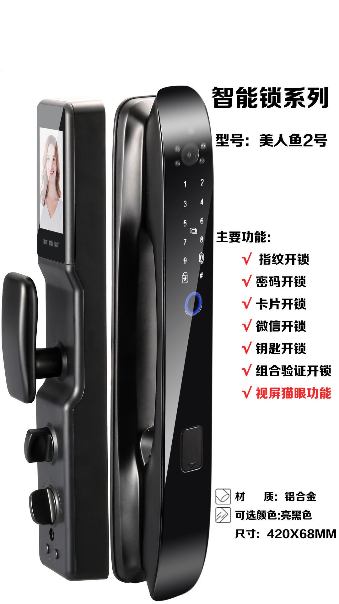 美人魚2號智能指紋密碼鎖