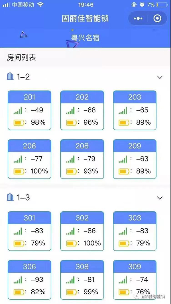 廣州上下九十八甫路粵心民宿精品酒店公寓此次選擇安裝了固麗佳GLJ-9899LoRa無線聯(lián)網(wǎng)密碼鎖。此款智能鎖外觀高端大氣,是固麗佳研發(fā)生產(chǎn)的專利產(chǎn)品。固麗佳LORA無線聯(lián)網(wǎng)鎖可實(shí)現(xiàn)密碼開鎖信息實(shí)時(shí)聯(lián)網(wǎng)監(jiān)控、手機(jī)開鎖,密碼開鎖,二維碼開鎖,不需布線就可以實(shí)現(xiàn)遠(yuǎn)程開鎖、遠(yuǎn)程鎖定鎖、遠(yuǎn)程送電斷電,防飛房,防欠租,還可電腦端手機(jī)端同步在線!功能強(qiáng)大,是精品特色酒店,高端公寓首選之良器!