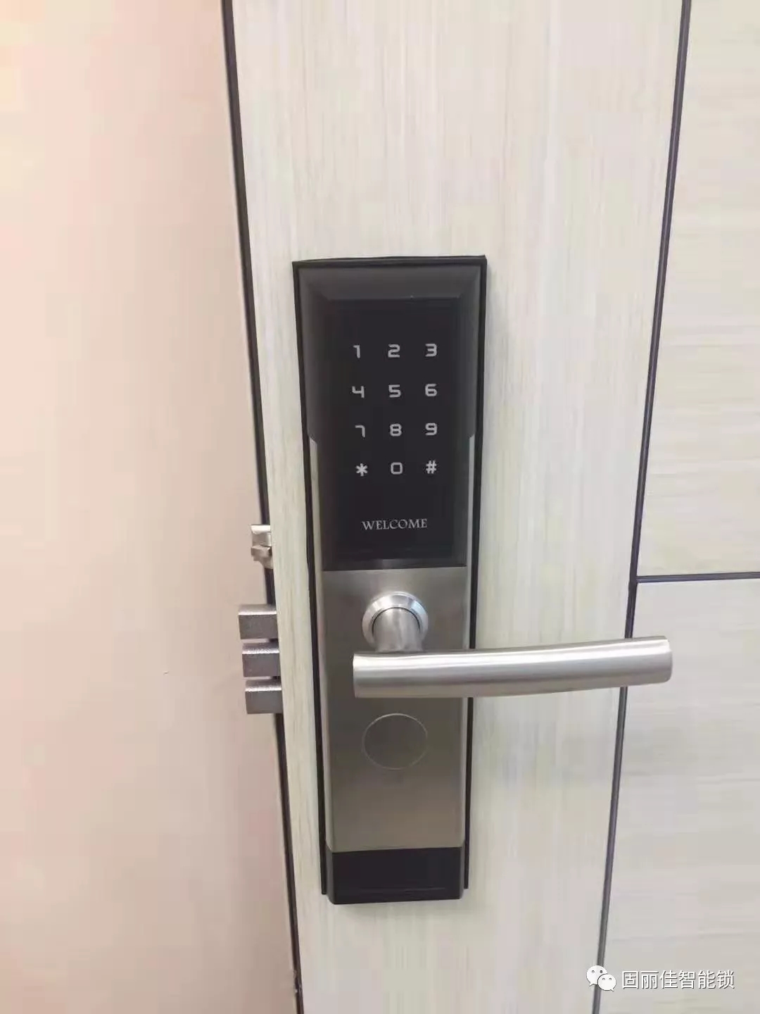 天河梵洛居公寓客房門鎖選擇安裝了固麗佳GLJ-9814不銹鋼LoRa無(wú)線聯(lián)網(wǎng)公寓防盜門鎖調(diào)試完成,此款標(biāo)配6068電子鎖體防盜門不用改孔。固麗佳LORA無(wú)線聯(lián)網(wǎng)密碼開鎖信息實(shí)時(shí)聯(lián)網(wǎng)監(jiān)控、可手機(jī)開鎖,密碼開鎖,二維碼開鎖,不需布線可實(shí)現(xiàn)遠(yuǎn)程開鎖,斷鎖,斷電,防飛房,防欠租,可電腦端手機(jī)端同步在線,隨時(shí)隨地管理!