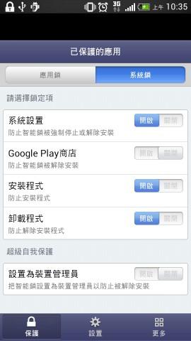 系統(tǒng)里可以選擇講智能鎖設定成拒絕移除的程式,也可以將智能鎖設置成為裝置管理員,讓智能鎖有更高的權限,也可以避免被有心人移除。
