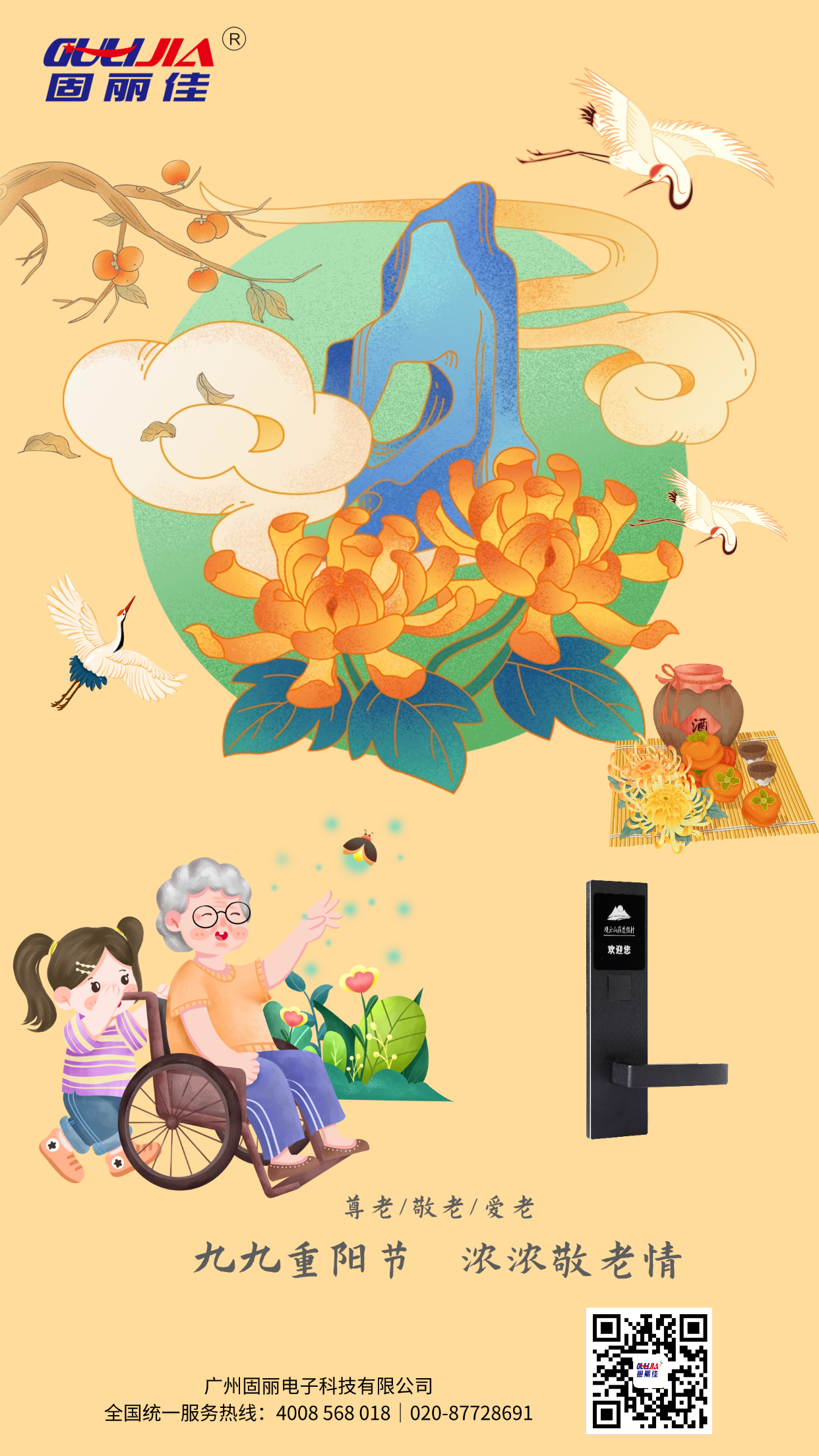 重陽節(jié),又稱重九節(jié)、茱萸節(jié)、登高節(jié)、敬老節(jié),時間在每年的農(nóng)歷九月初九,是中國慶祝豐收、祈福長壽、孝老思親的節(jié)日。《易經(jīng)》中將“九”定為陽數(shù),九月九日,日月并陽,故稱“重陽”。固麗佳全體同仁祝大家身體健康,開心長壽,歲歲安康!